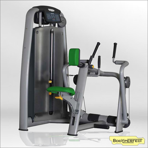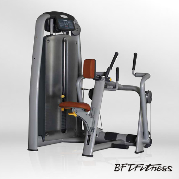 背部。主要锻炼: 斜方肌中部、斜方肌下部、下菱形肌、背阔肌、三角肌后方、肱桡肌。次要锻炼:肱二头肌。 |